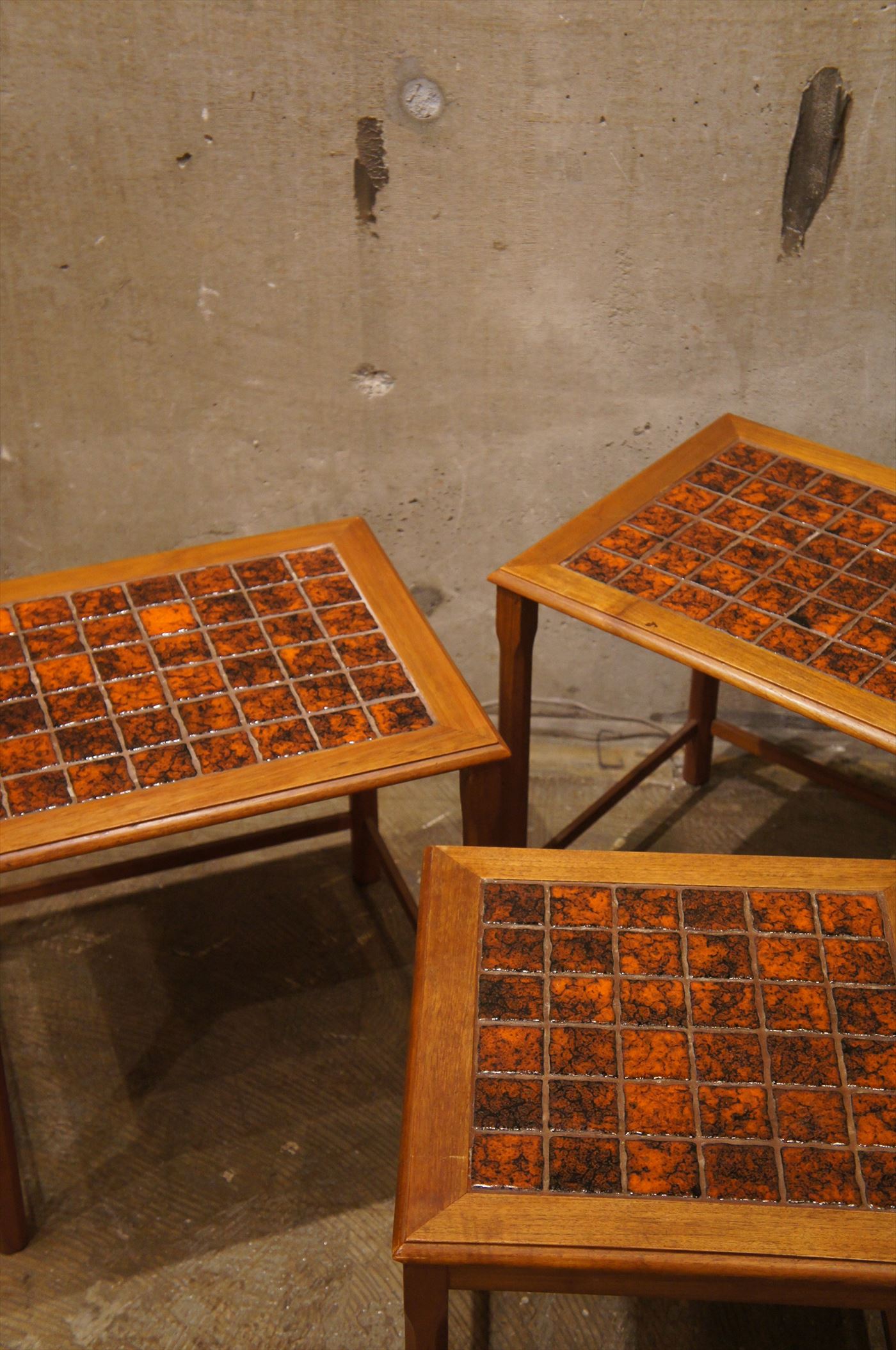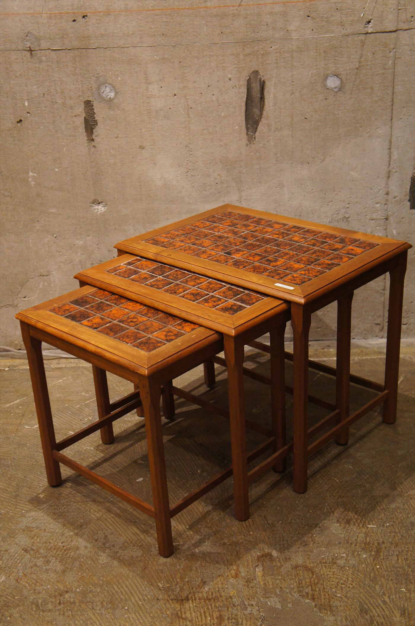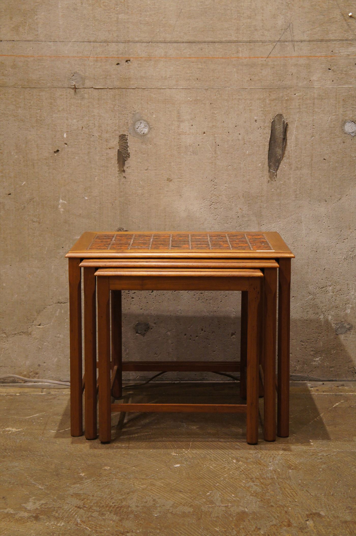 大、中、小の三台とも天板にタイルが施された贅沢なネストテーブル