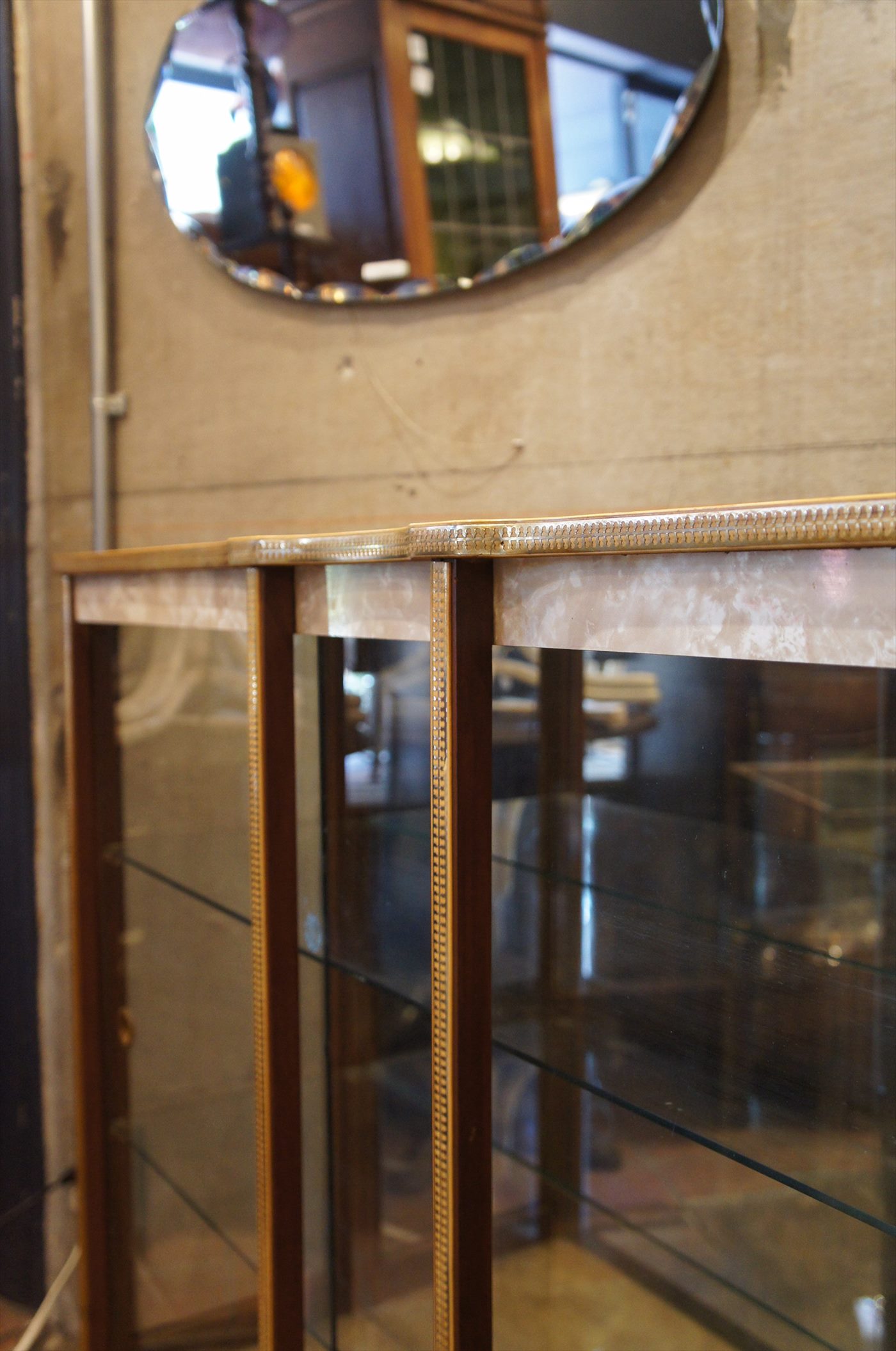 ミラーバックで奥行が感じられ、サイドもガラスなので、採光に優れ、中に飾ったものが美しく輝きます