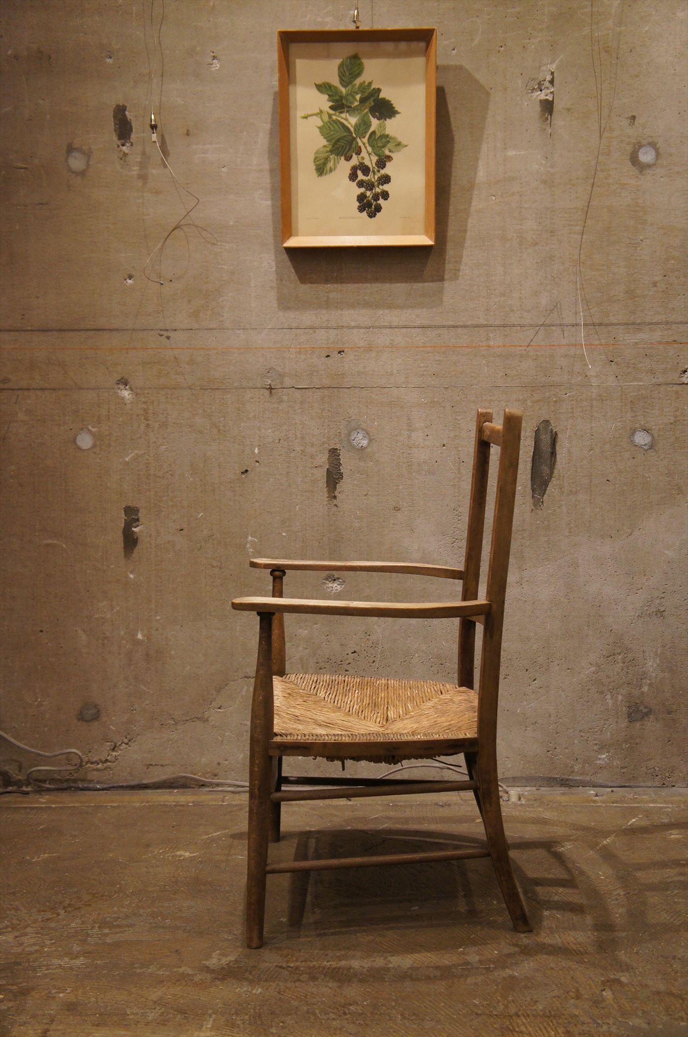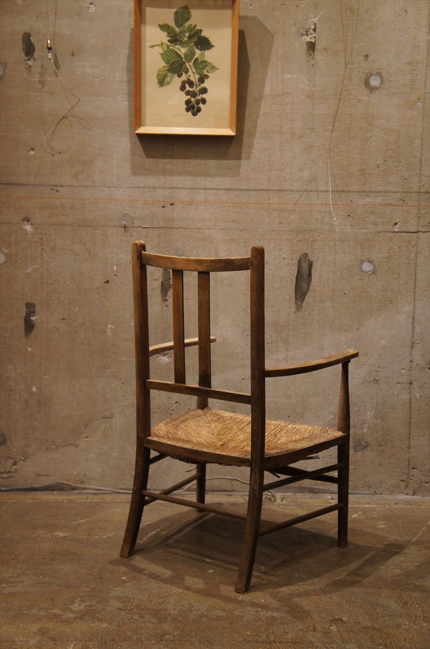 藁編み座面の原始的なスタイルのチェア