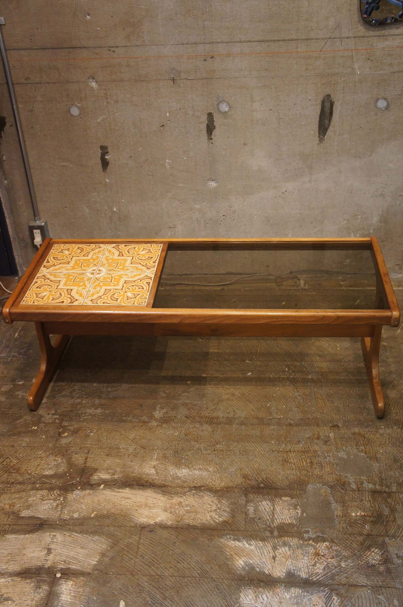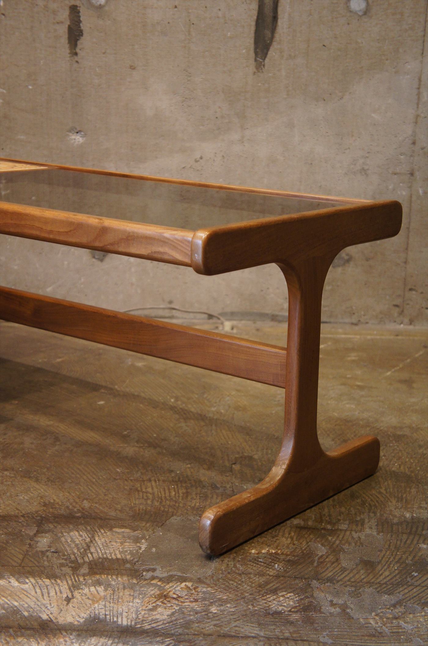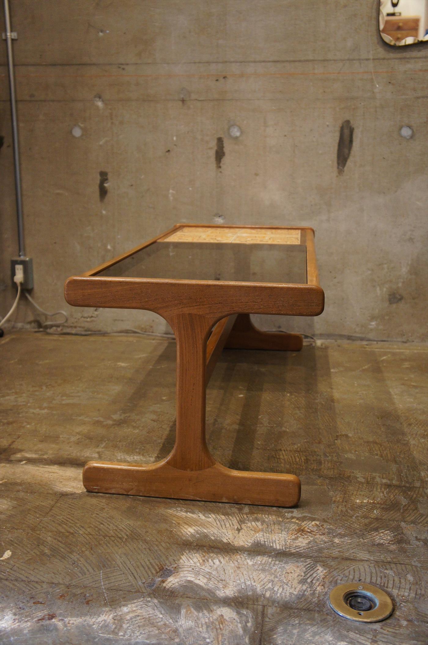 こちらはチーク材のフレームとガラス、タイルのコンビネーションのコーヒーテーブル
