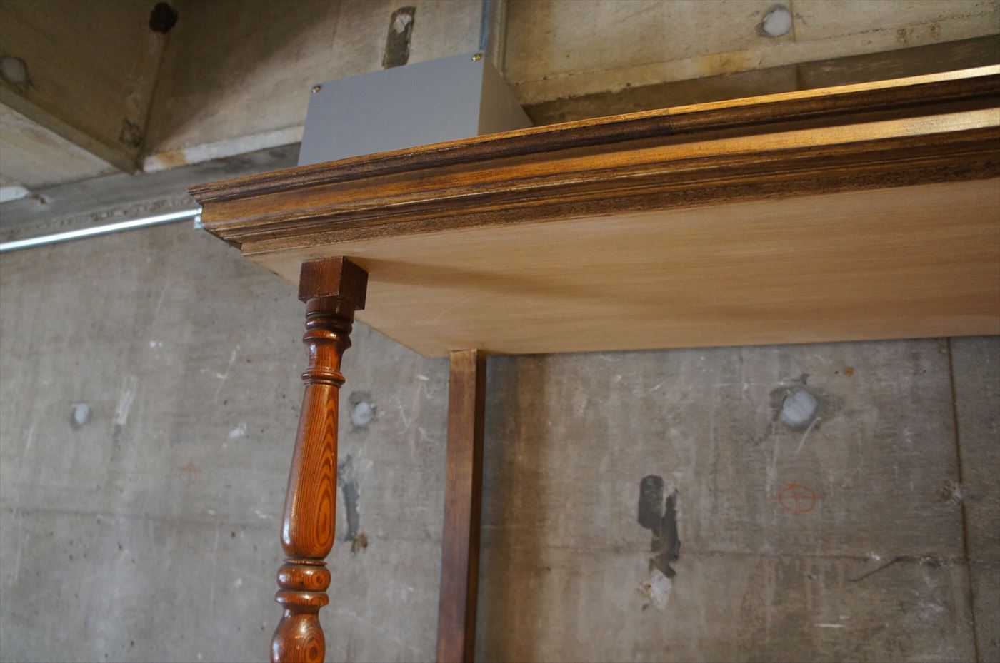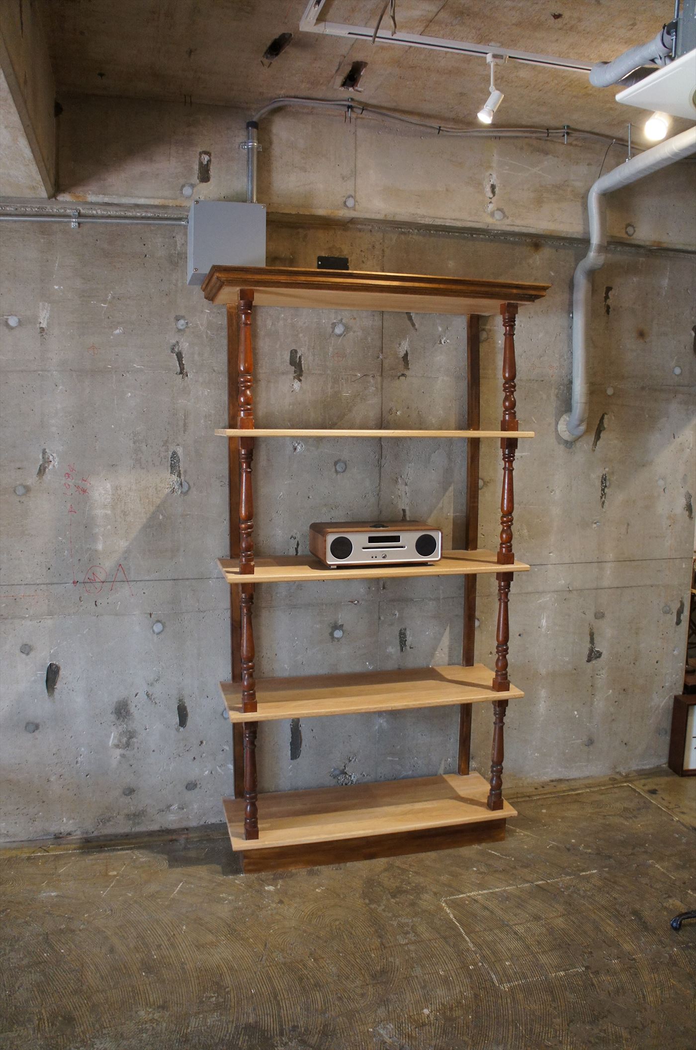 アンティークのパーツを柱に使用して製作したオリジナルブックシェルフ