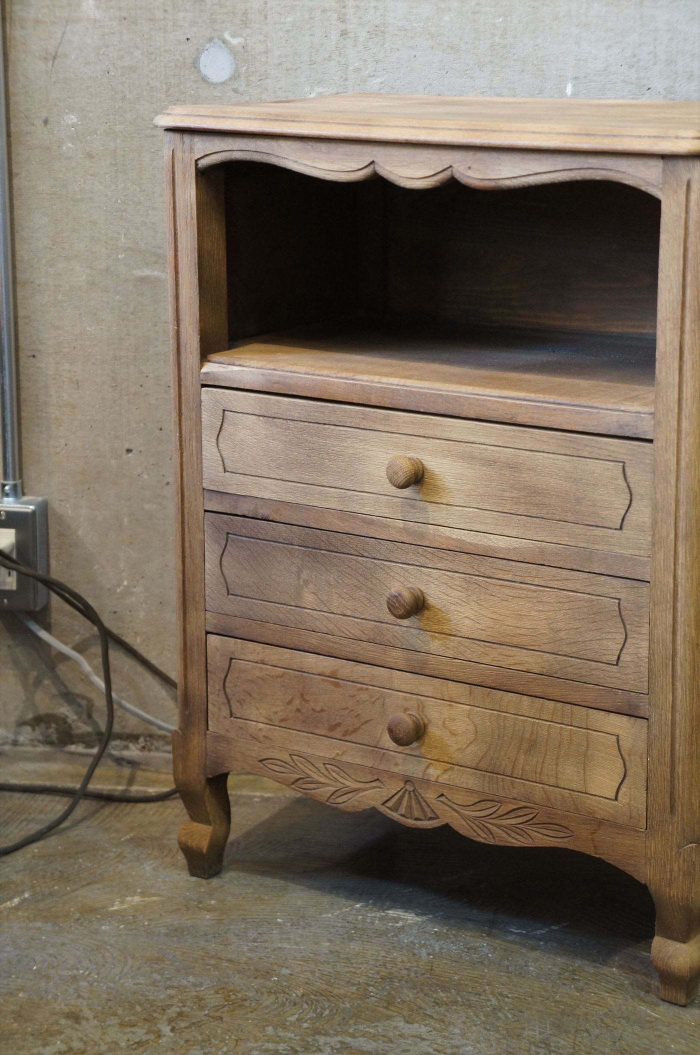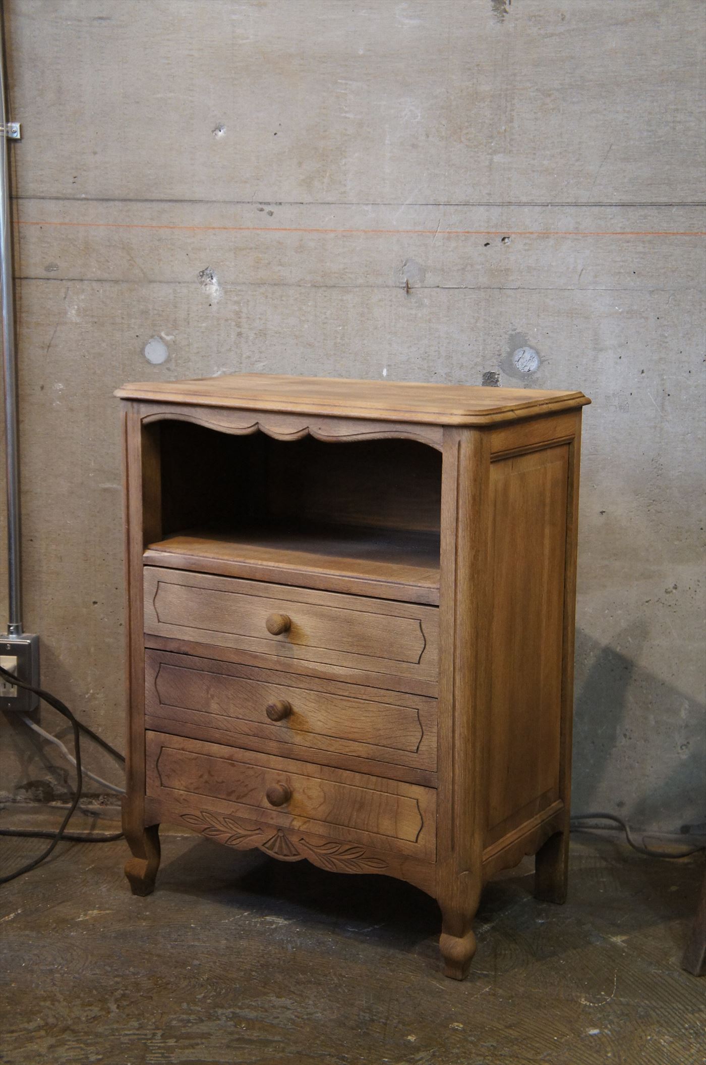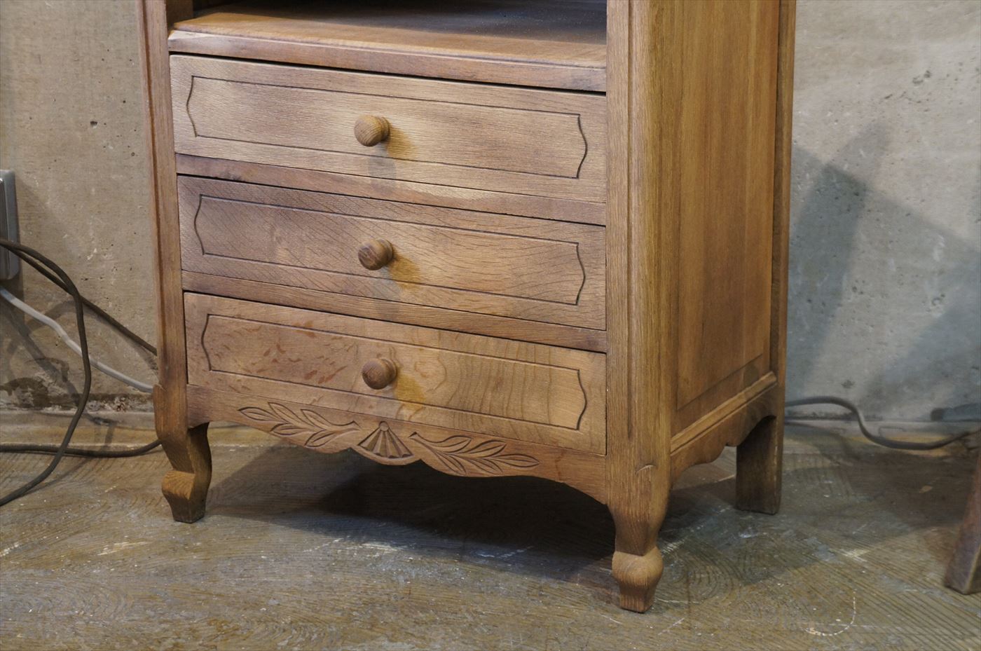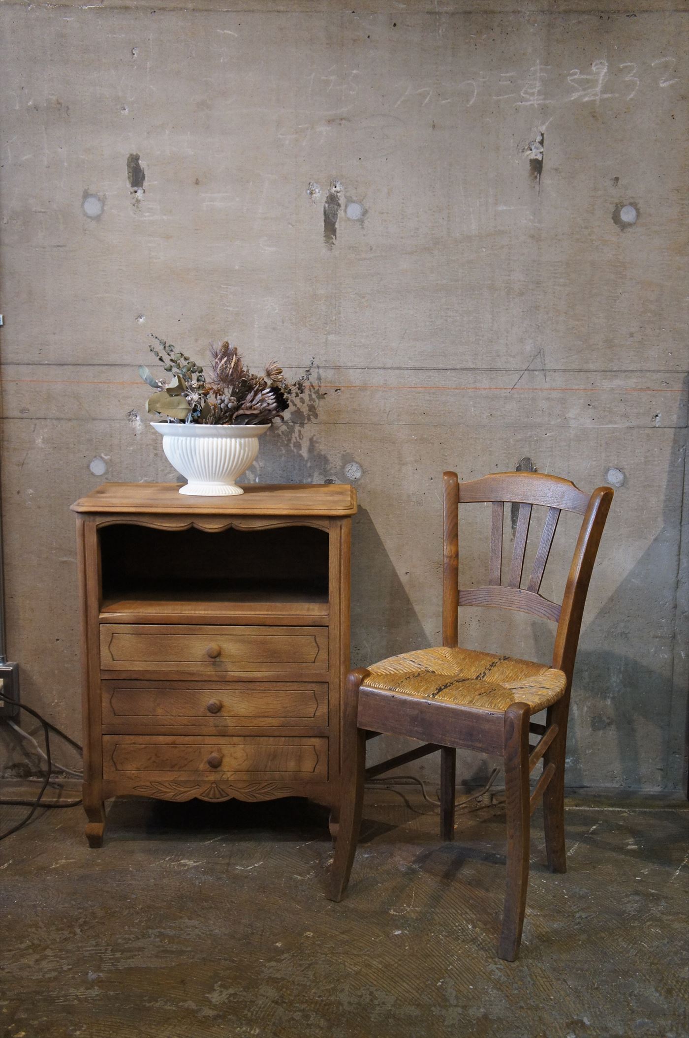 古い塗装が剥離され、木材の質感がよく出ているチェスト