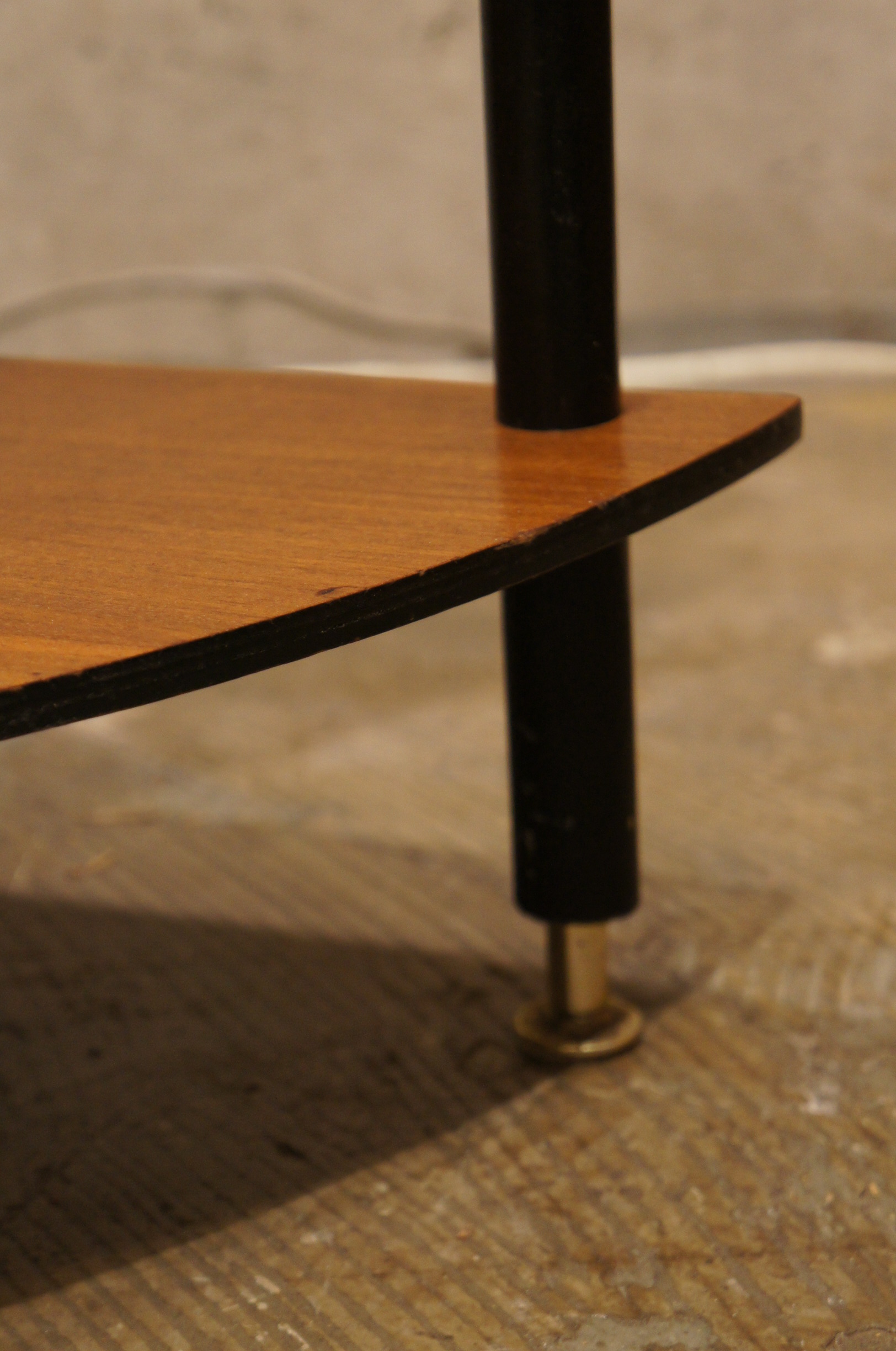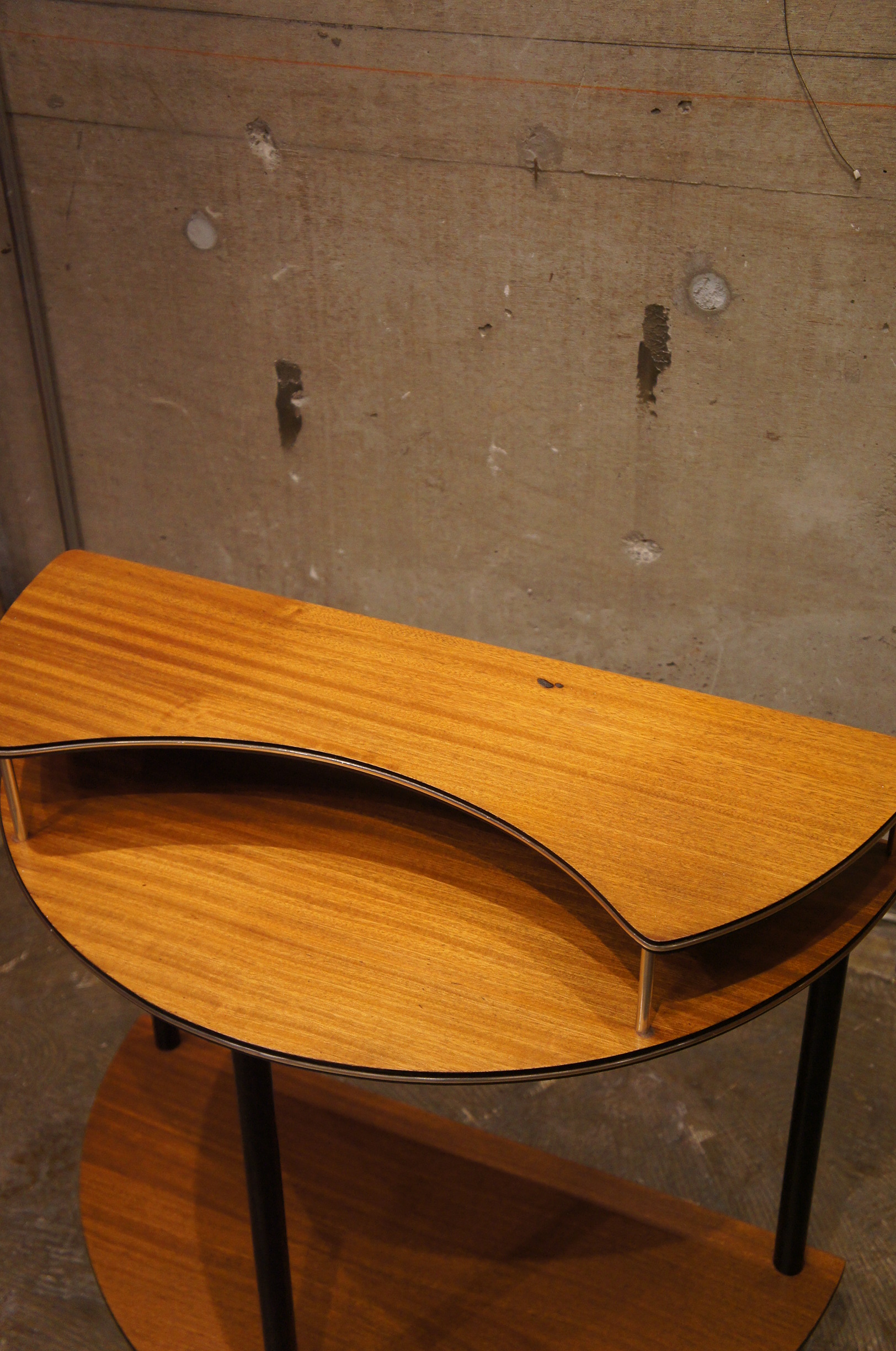 レトロモダンなスタイルで、チーク材のトリムにブラックと真鍮を使用