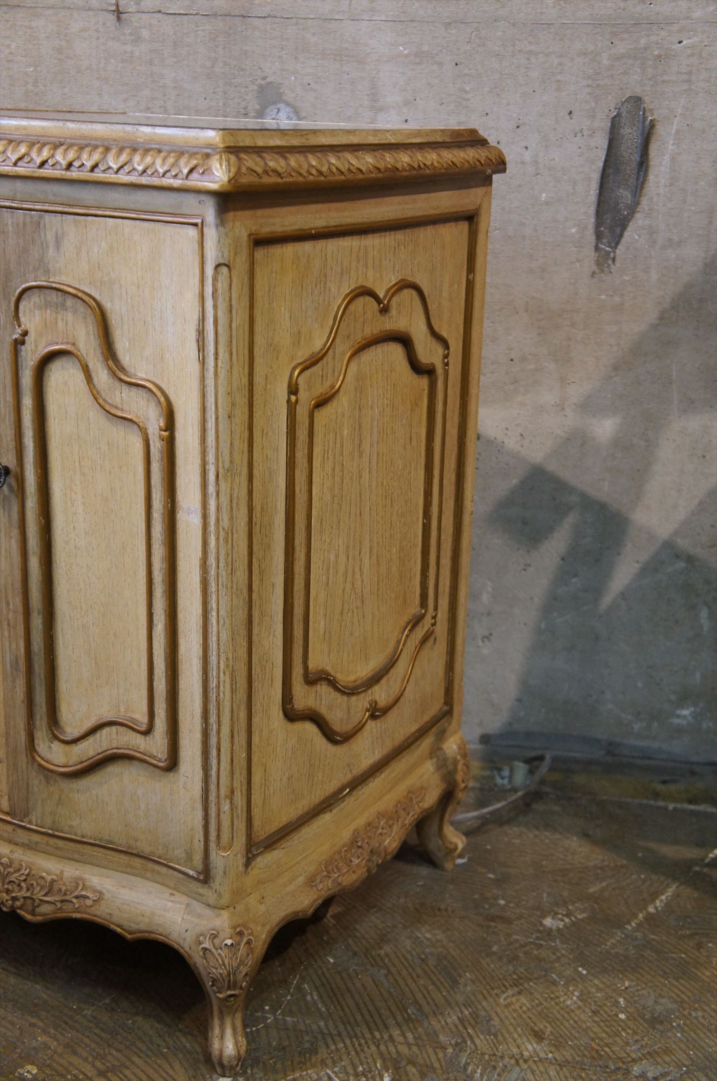 絶妙にくすんだ白のペイントとゴールドのトリムが落ち着いた印象