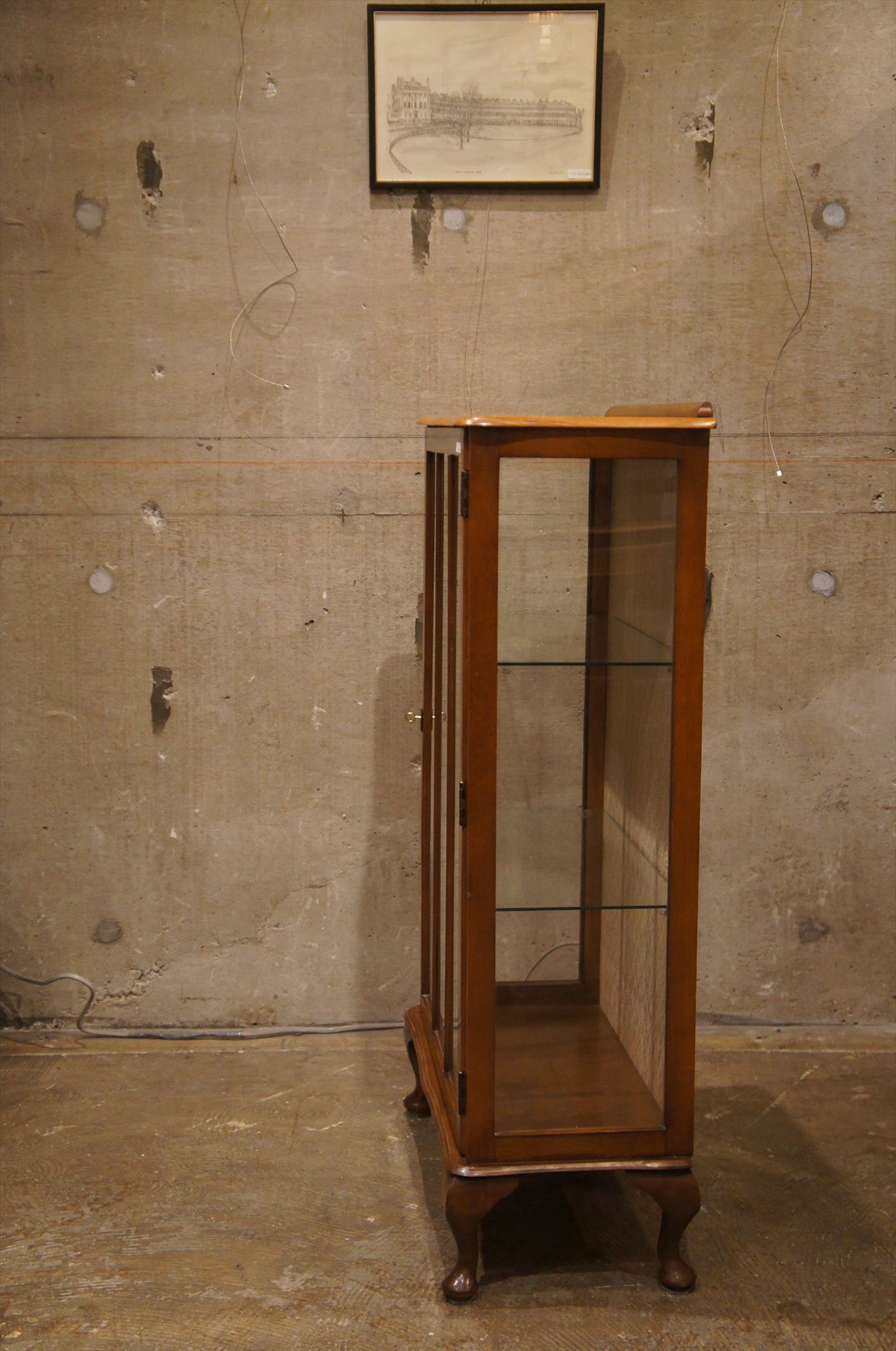 猫脚のスタイルがエレガントなガラスキャビネット