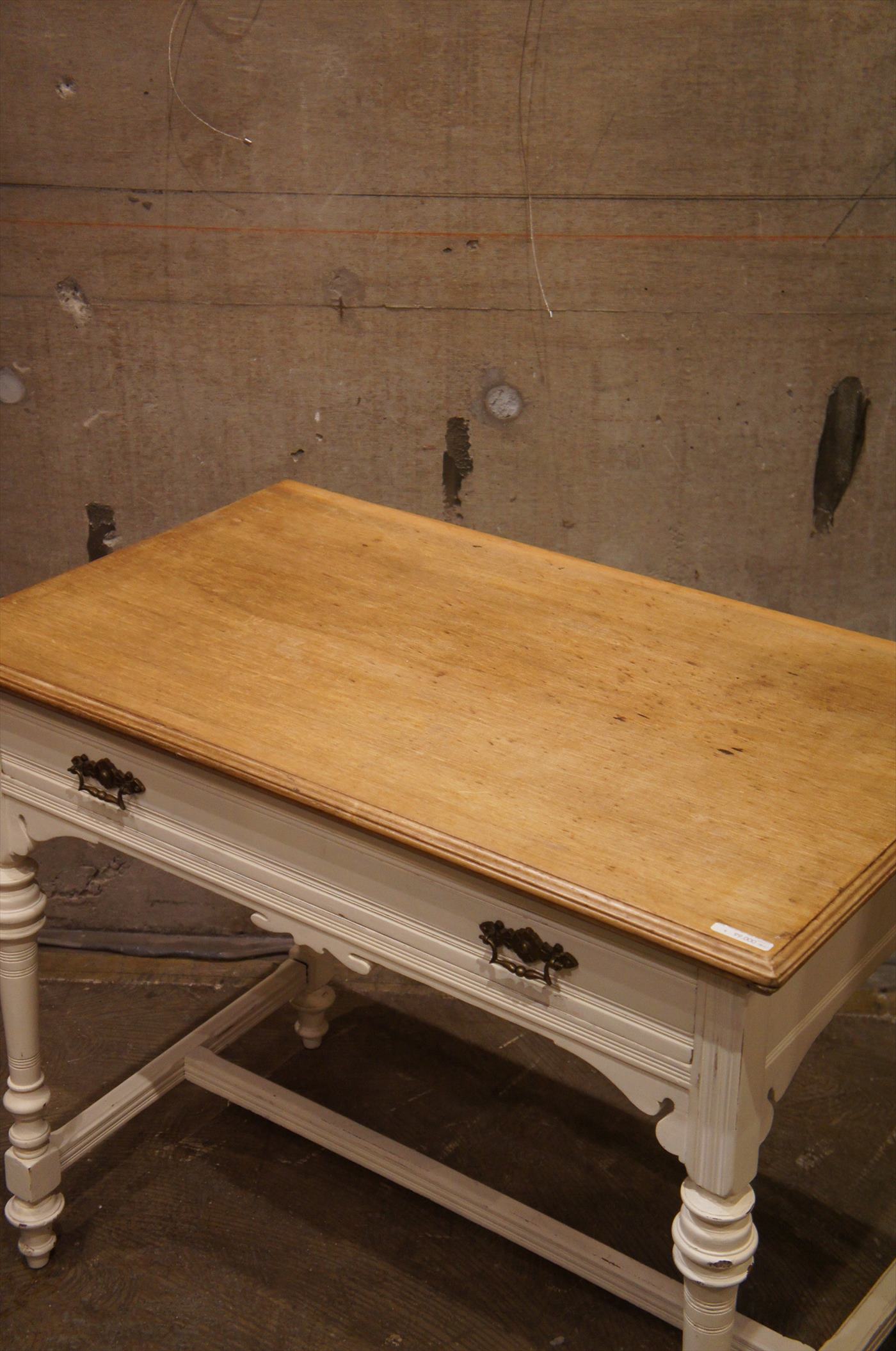 天板がパインの無塗装で脚部が白のつや消しでペイントされたキッチンテーブル